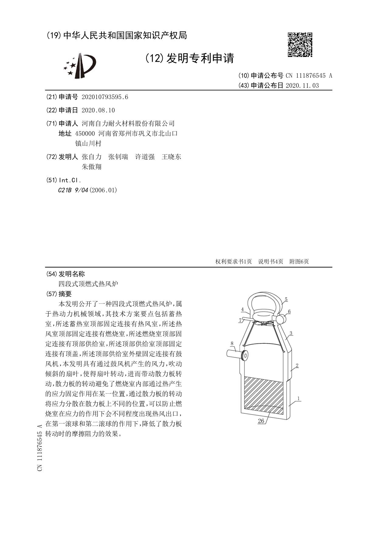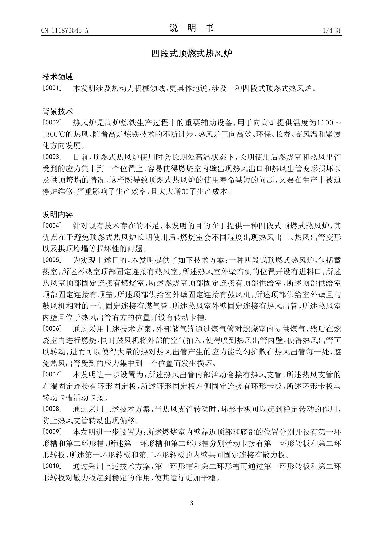 发明专利——四段式顶燃式热风炉